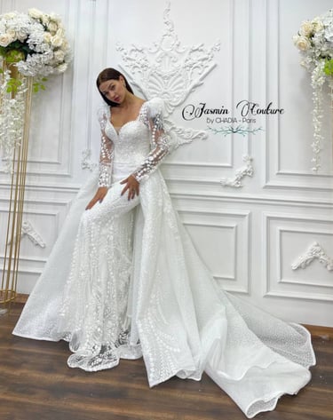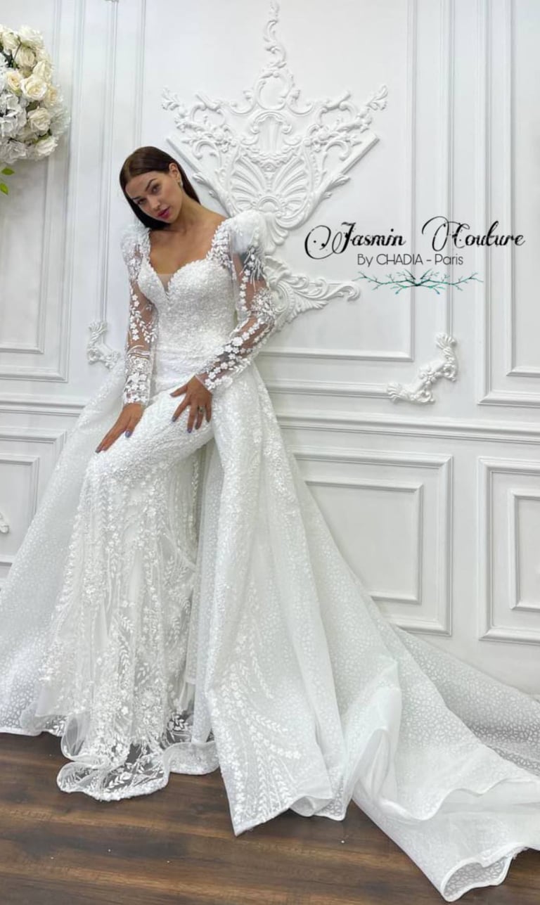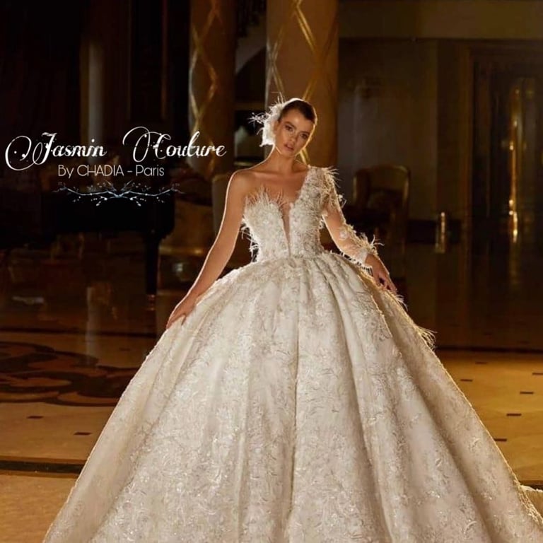 Chez Jasmin Haute Couture, Chadia imagine et crée des pièces uniques, façonnées à la main avec une précision exceptionnelle.